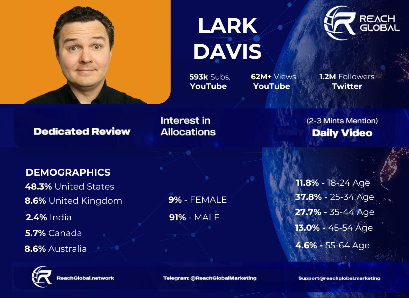 Reach Global is the world's first crypto funded Digital Media Network connecting you to a global audience via entertainment and education within entrepreneurship. With genres including real-estate, crypto, gaming, music, and sports we share the vision through film photography, audio, social media platforms, and more emerging tech. Our entrepreneurial-minded team produces and provides massive reach for creators and clients alike with over 100 million monthly impressions and a growing ad network.